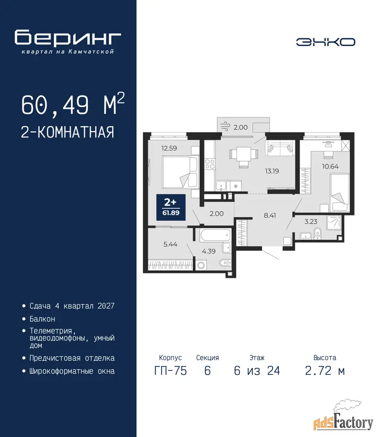 | Общая площадь (кв.м) | 60.49 |