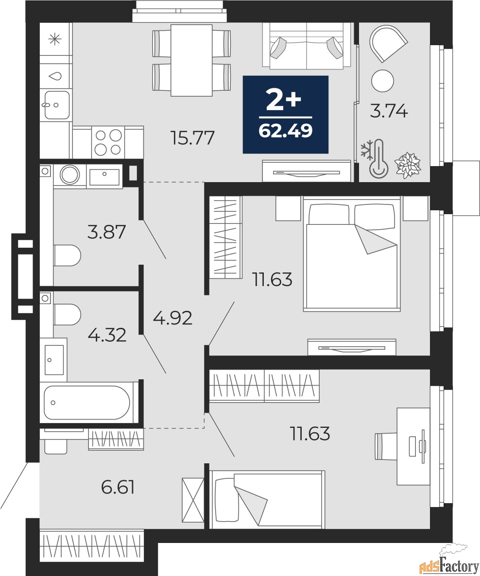 | Общая площадь (кв.м) | 60.62 |
