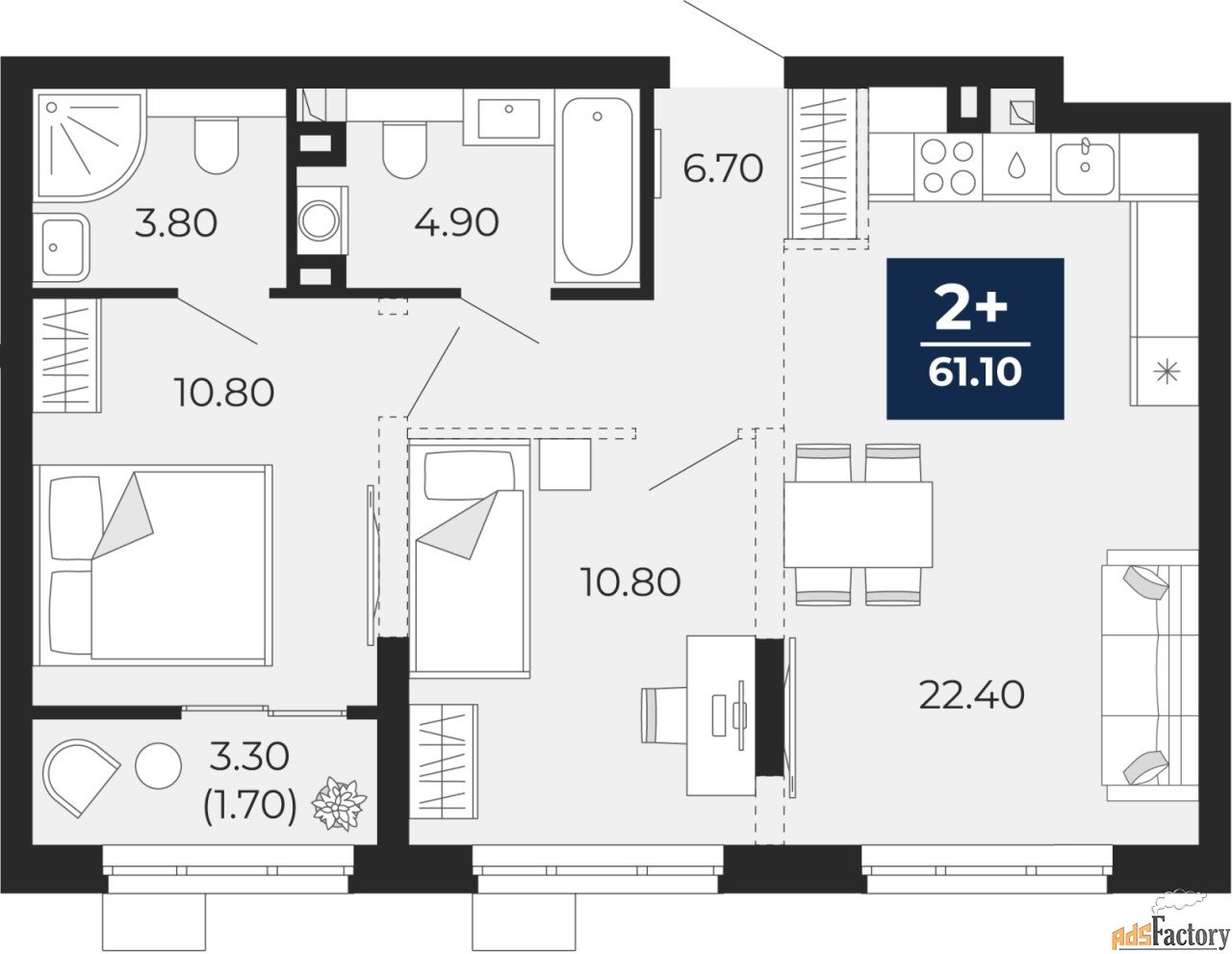 | Общая площадь (кв.м) | 61.1 |