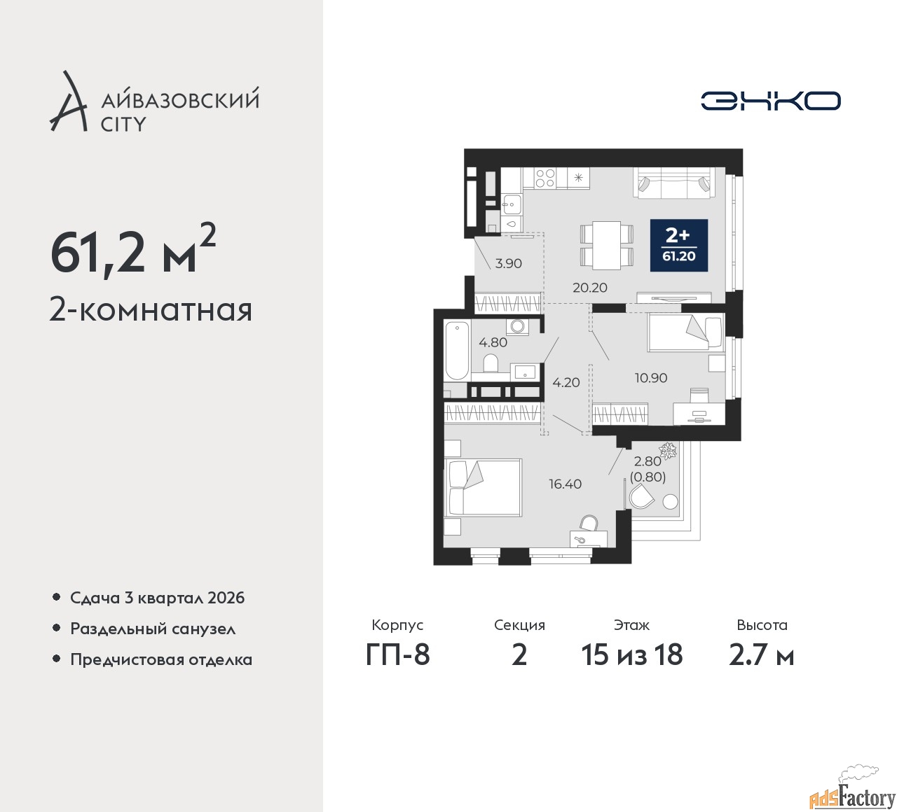 | Общая площадь (кв.м) | 61.2 |