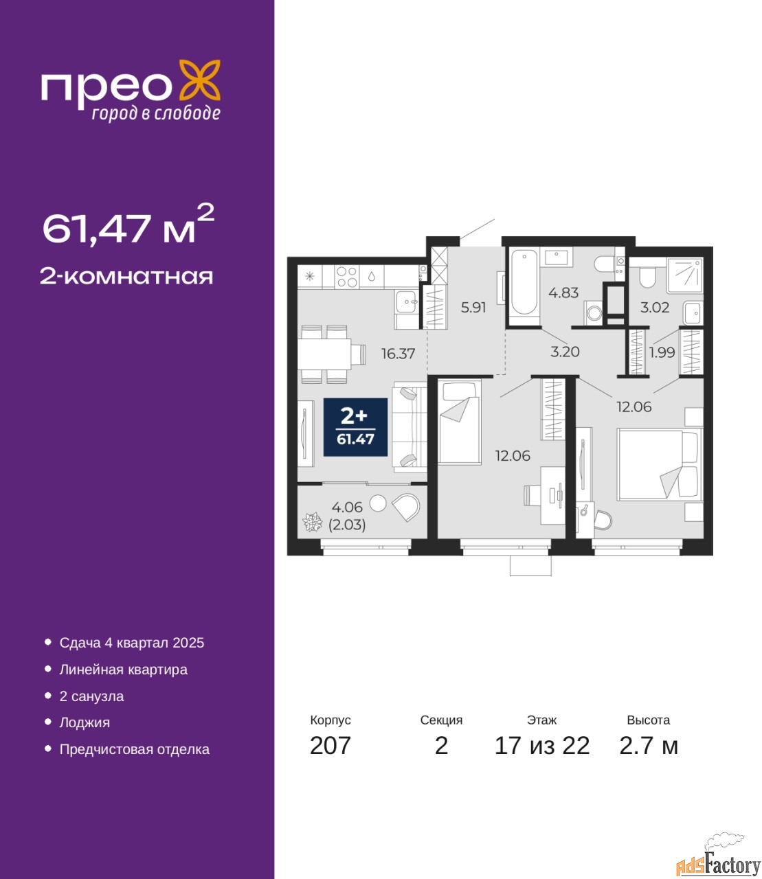 | Общая площадь (кв.м) | 61.47 |