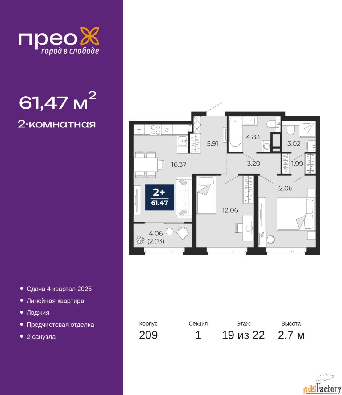 | Общая площадь (кв.м) | 61.47 |