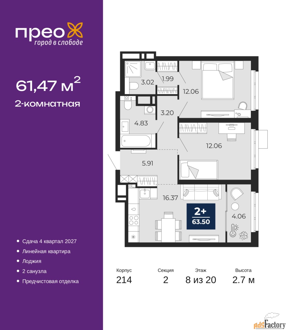 | Общая площадь (кв.м) | 61.47 |