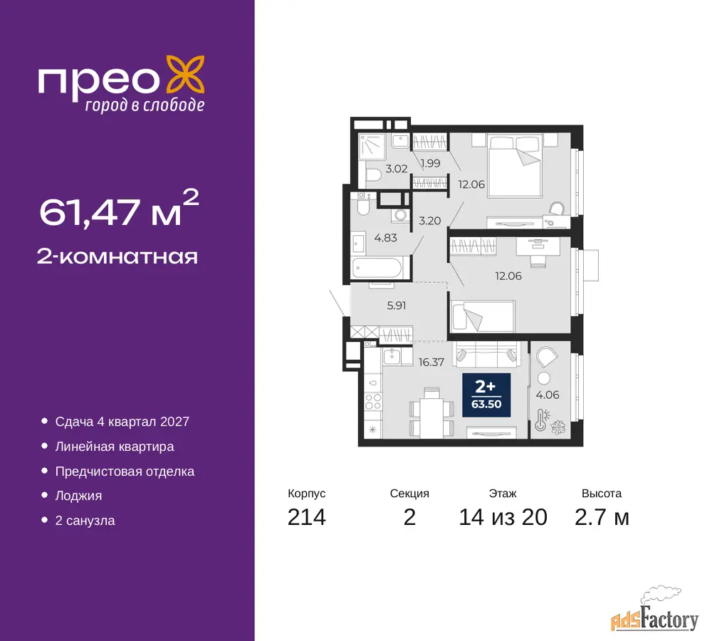 | Общая площадь (кв.м) | 61.47 |