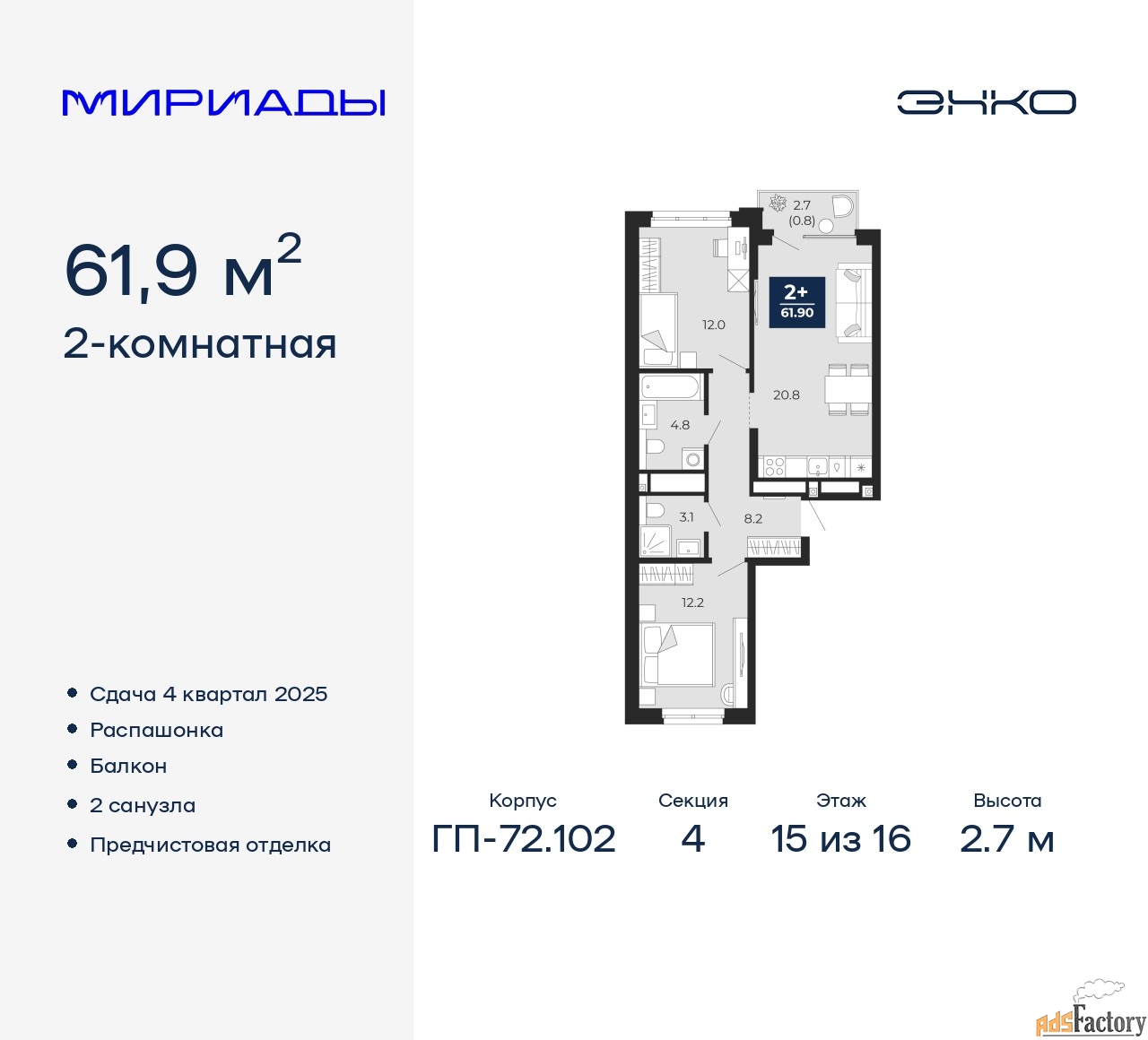| Общая площадь (кв.м) | 61.9 |