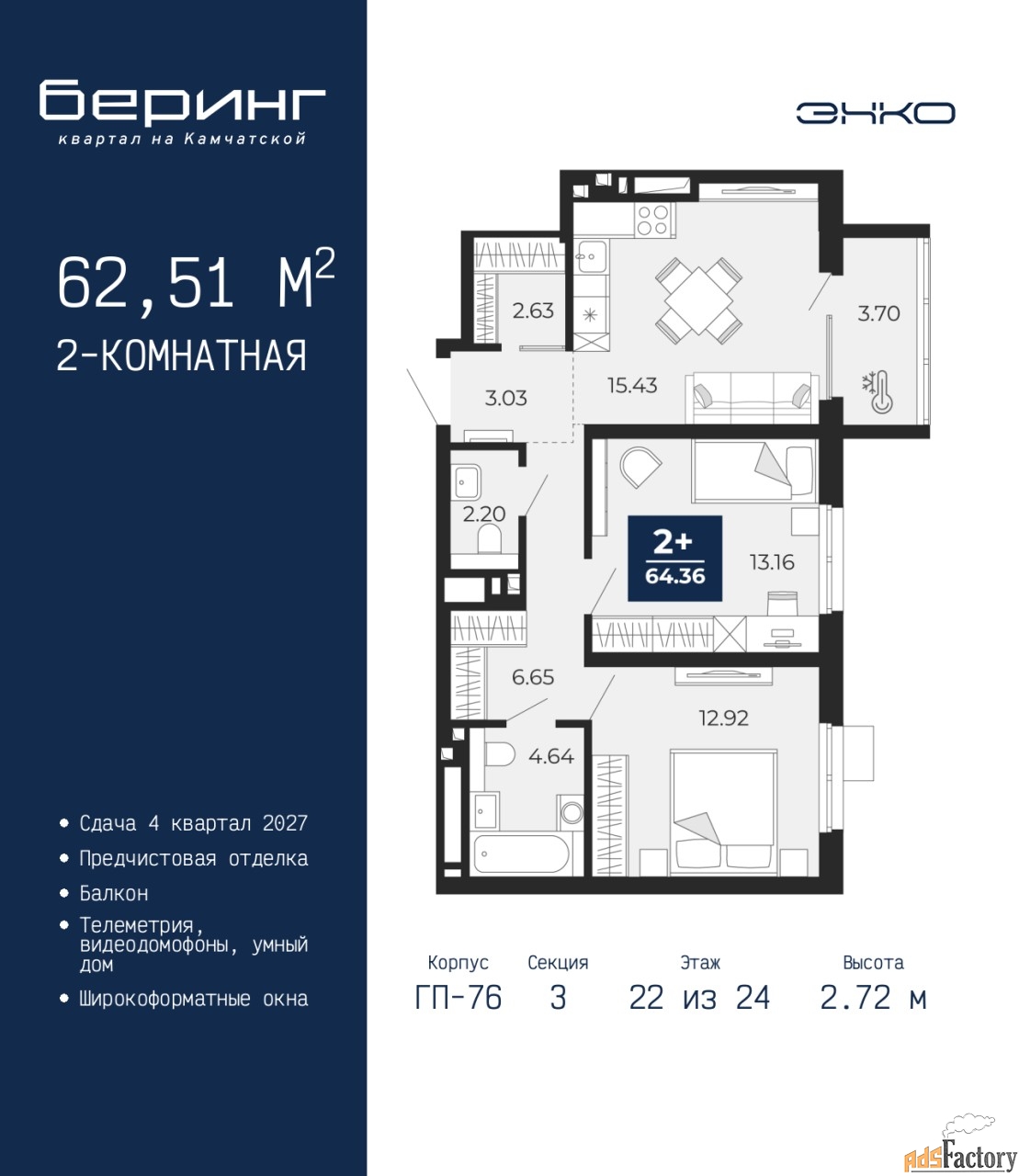 | Общая площадь (кв.м) | 62.51 |
