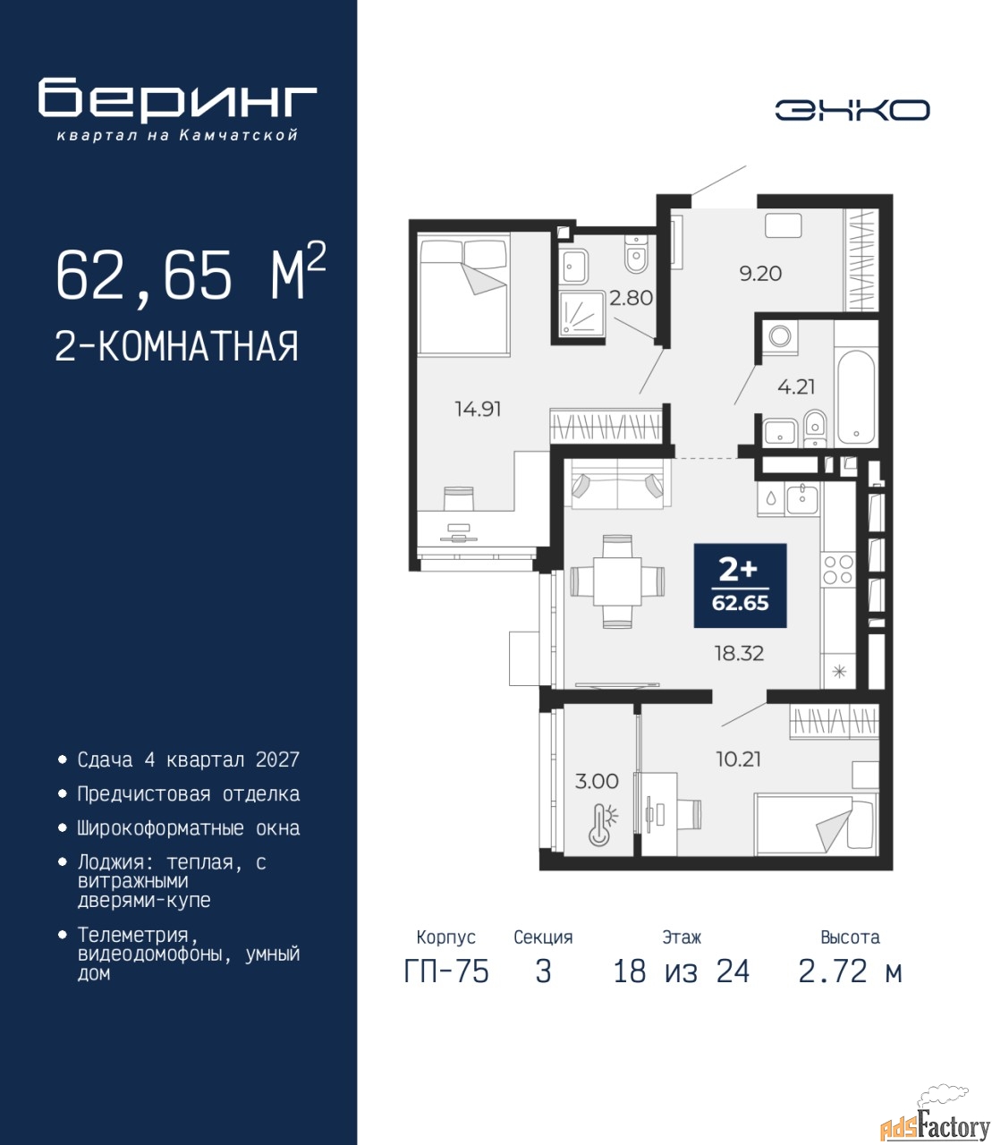 | Общая площадь (кв.м) | 62.65 |