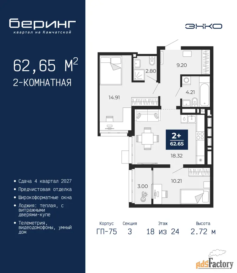 | Общая площадь (кв.м) | 62.65 |