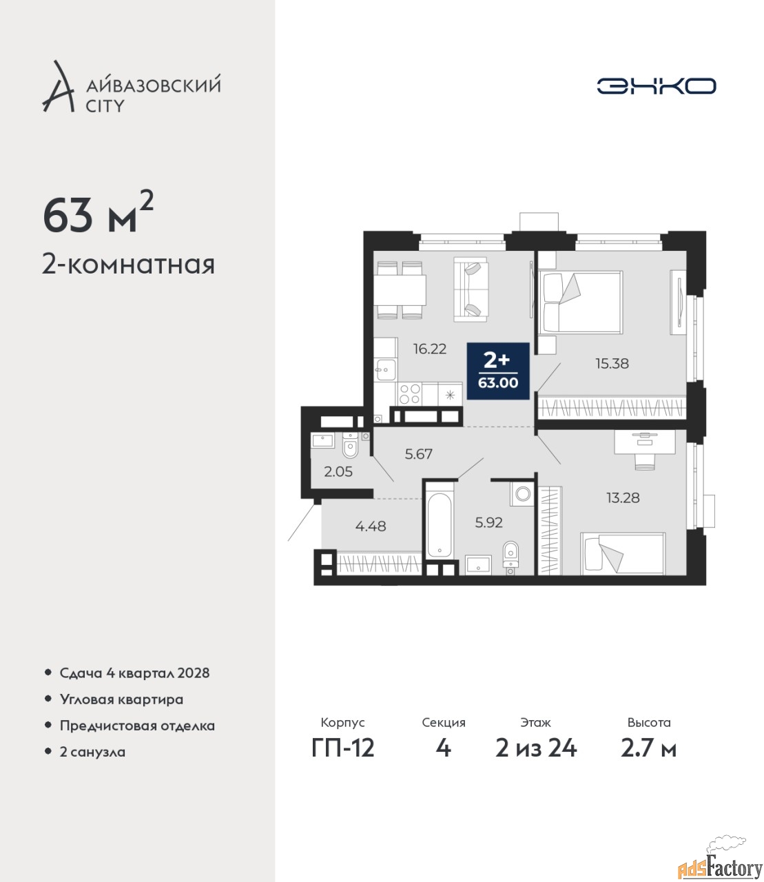 | Общая площадь (кв.м) | 63 |