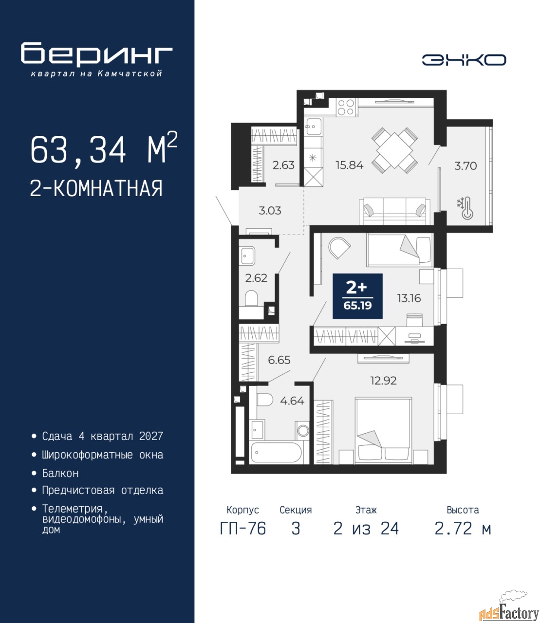 | Общая площадь (кв.м) | 63.34 |