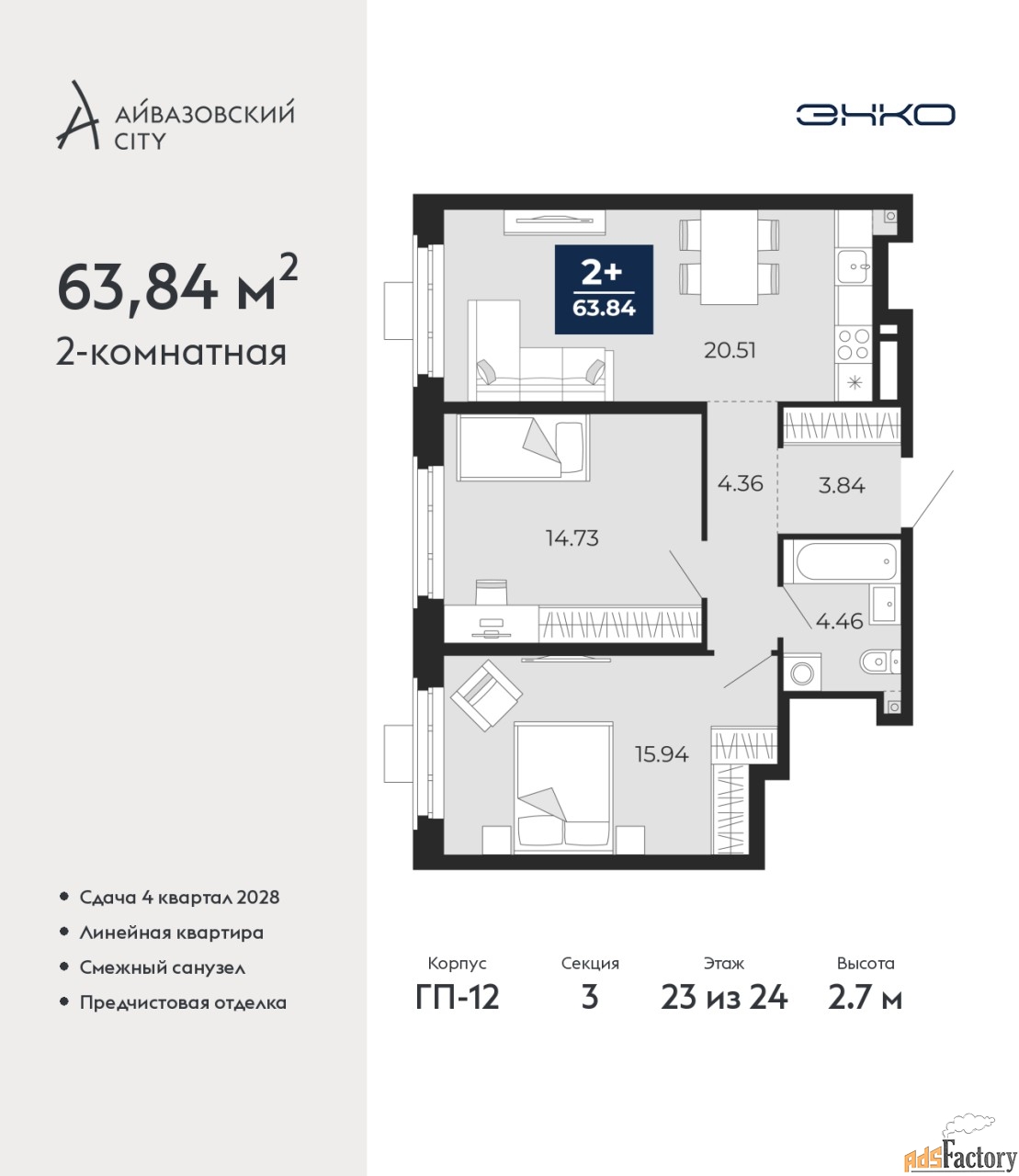 | Общая площадь (кв.м) | 63.84 |
