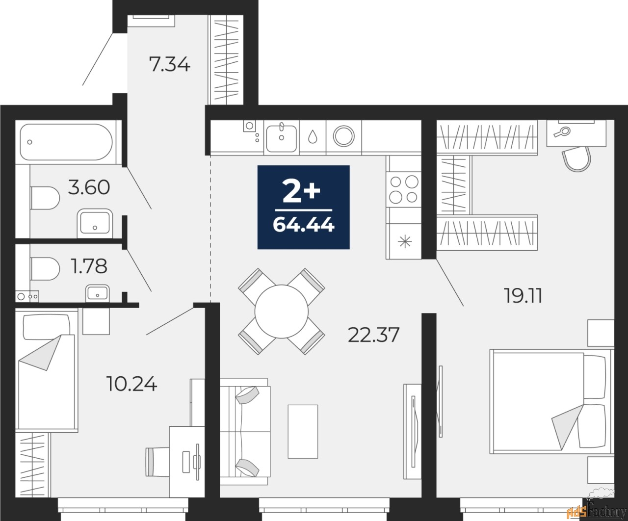 Дом монолитный, многоподъездный, переменной этажности, от 9 до 22 этажей. Квартира находится в 73.4-й секции высотой 12 этажей в корпусе ГП-73. На этаже 8 квартир. В подъезде 1 пассажирский и 1 грузовой лифт. Окончание строительства - 4 квартал 2025 года. Оформление сделки по договору долевого участия.