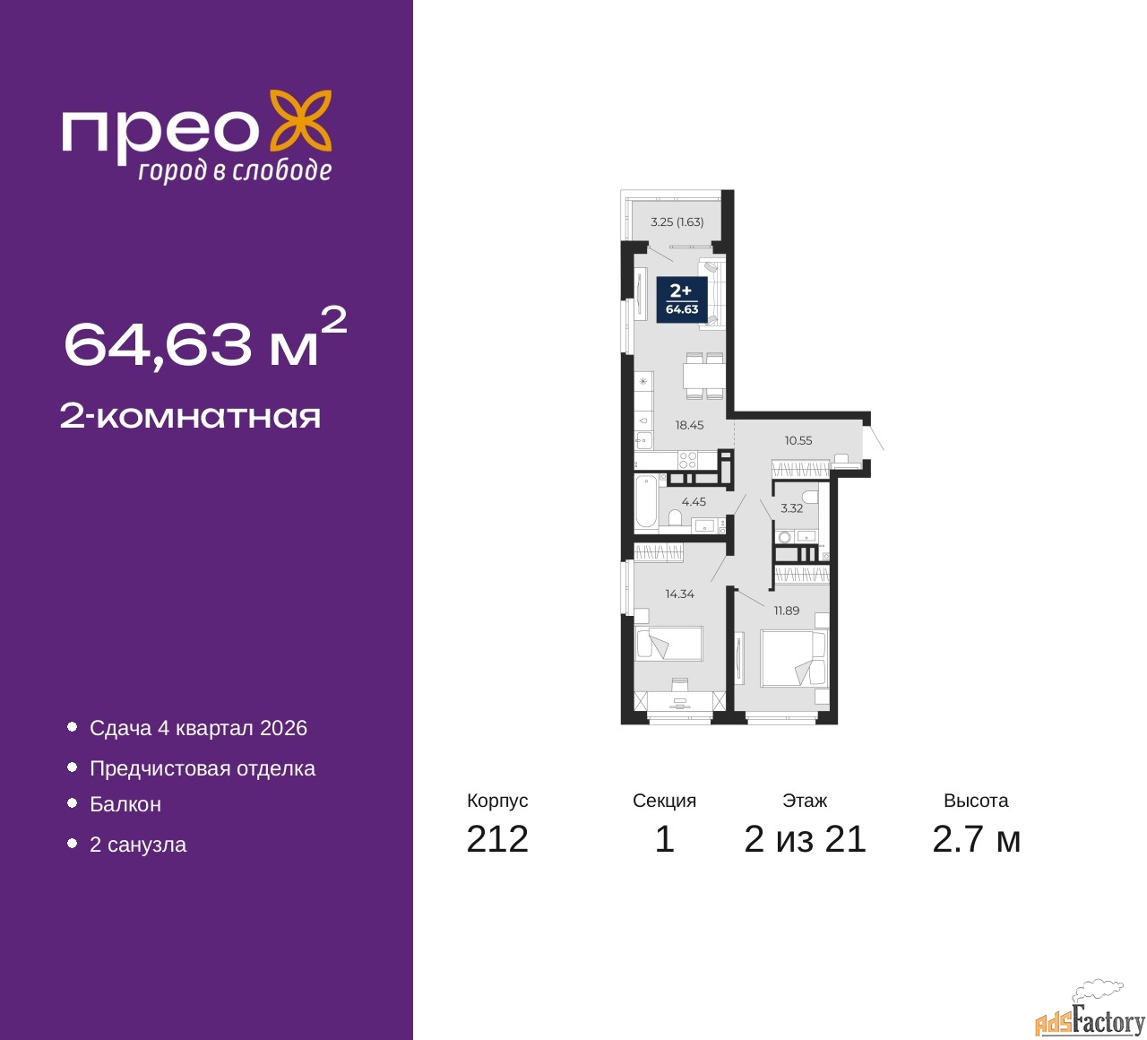 Квартира находится в корпусе 212. Дом монолитный, одноподъездный, высотой 21 этаж. На этаже 8 квартир. В подъезде 2 пассажирских и 1 грузовой лифт. Окончание строительства - 4 квартал 2026 года. Оформление сделки по договору долевого участия.