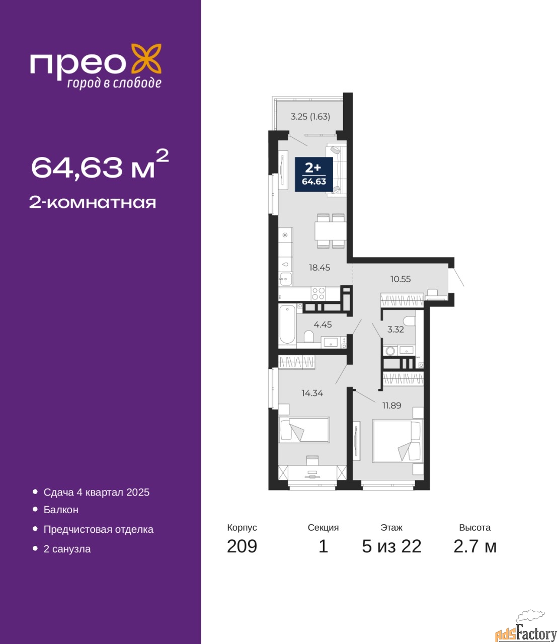 Квартира находится в корпусе 209. Дом монолитный, одноподъездный, высотой 22 этажа. На этаже 8 квартир. В подъезде 1 пассажирский и 1 грузовой лифт. Окончание строительства - 1 квартал 2026 года. Оформление сделки по договору долевого участия.