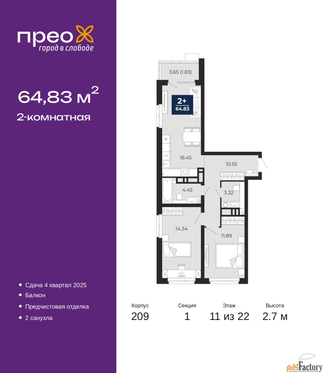 | Общая площадь (кв.м) | 64.83 |