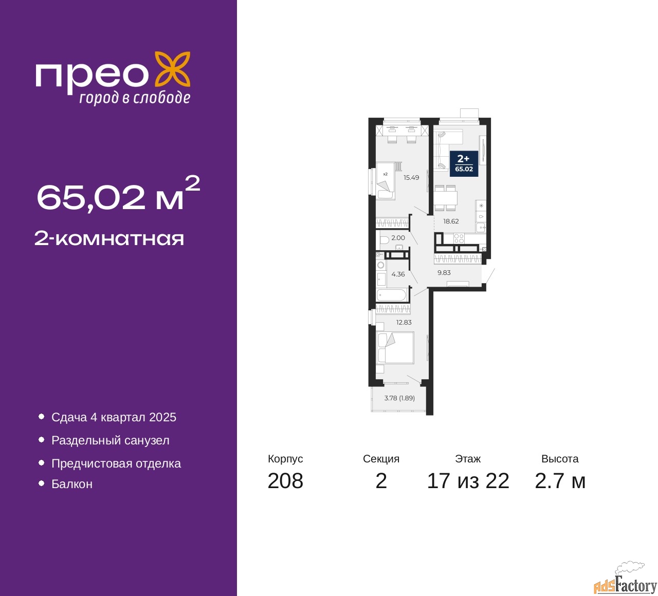 | Общая площадь (кв.м) | 65.02 |