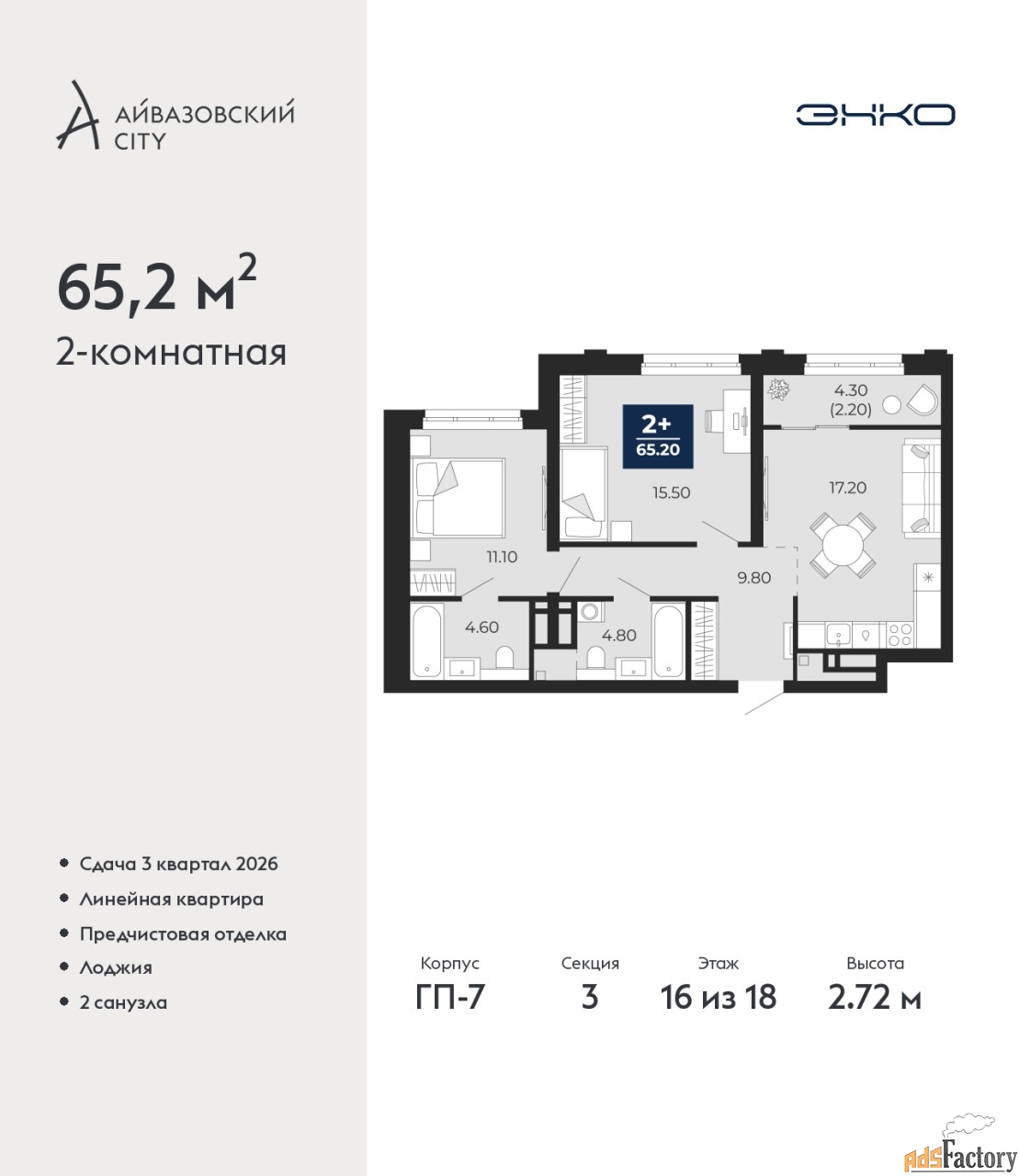 | Общая площадь (кв.м) | 65.2 |