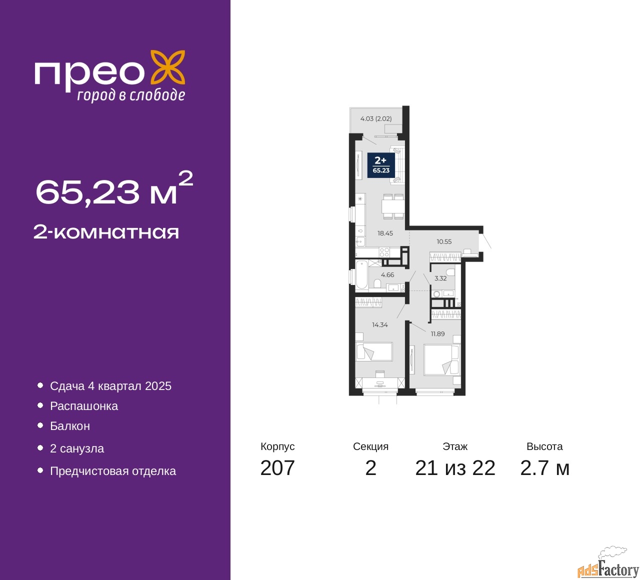 Дом монолитный, двухподъездный, высотой 22 этажа. Квартира находится во 2-й секции в корпусе 207. На этаже 8 квартир. В подъезде 1 пассажирский и 1 грузовой лифт. Окончание строительства - 4 квартал 2025 года. Оформление сделки по договору долевого участия.