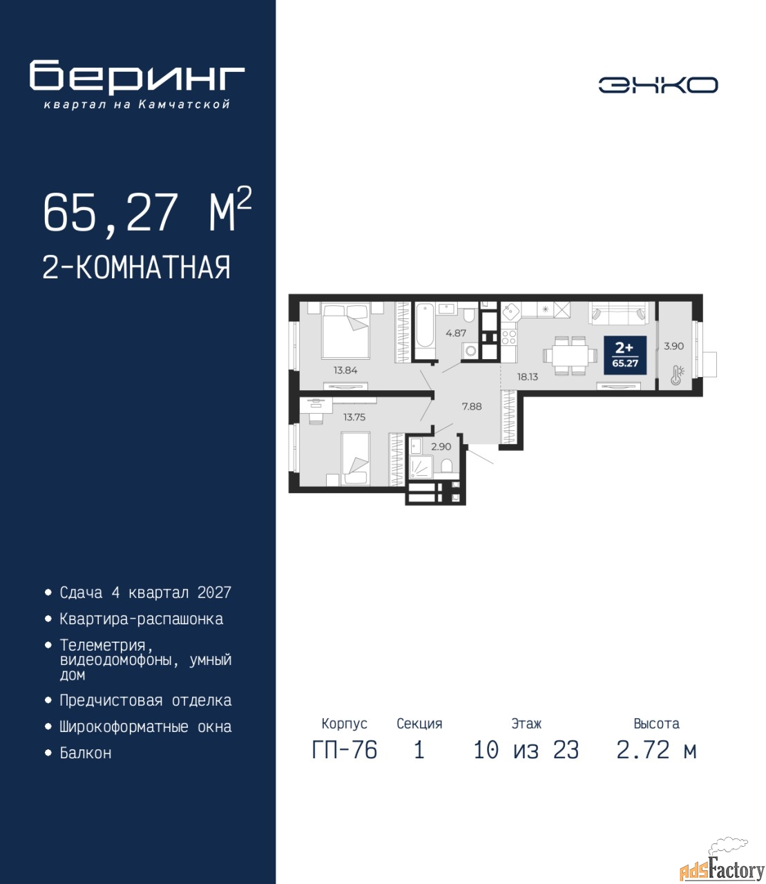| Общая площадь (кв.м) | 65.27 |