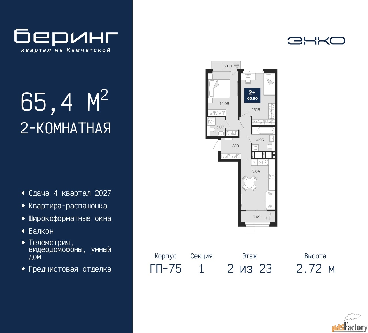 Дом монолитный, многоподъездный, переменной этажности, от 17 до 24 этажей. Квартира находится в 1-й секции высотой 23 этажа в корпусе ГП-75. На этаже 8 квартир. В подъезде 2 пассажирских и 1 грузовой лифт. Окончание строительства - 4 квартал 2027 года. Оформление сделки по договору долевого участия.