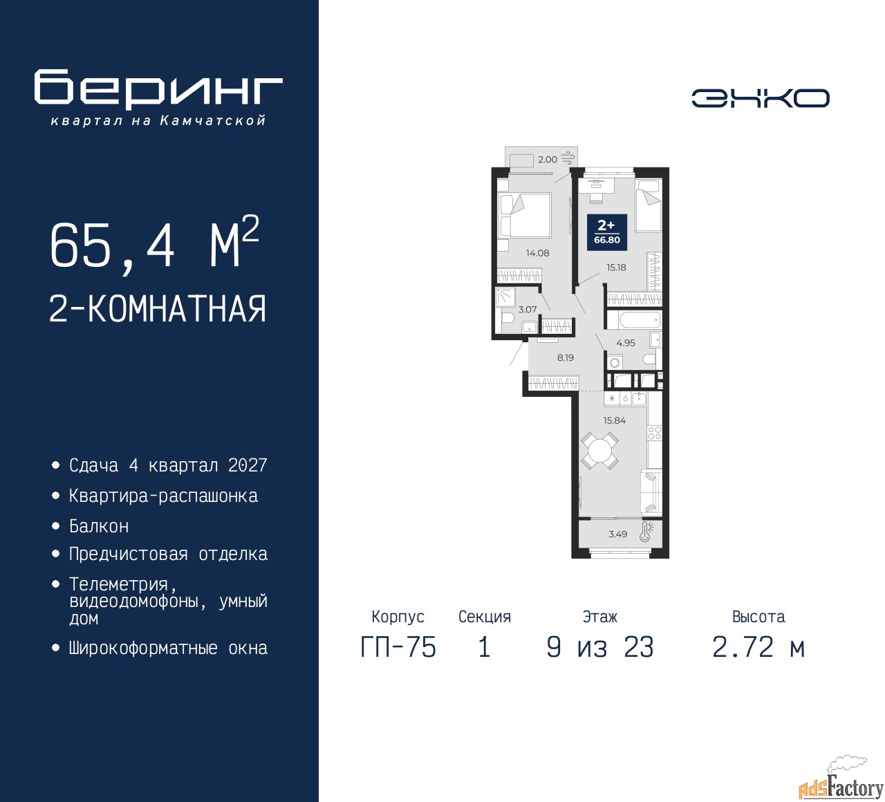Дом монолитный, многоподъездный, переменной этажности, от 17 до 24 этажей. Квартира находится в 1-й секции высотой 23 этажа в корпусе ГП-75. На этаже 8 квартир. В подъезде 2 пассажирских и 1 грузовой лифт. Окончание строительства - 4 квартал 2027 года. Оформление сделки по договору долевого участия.