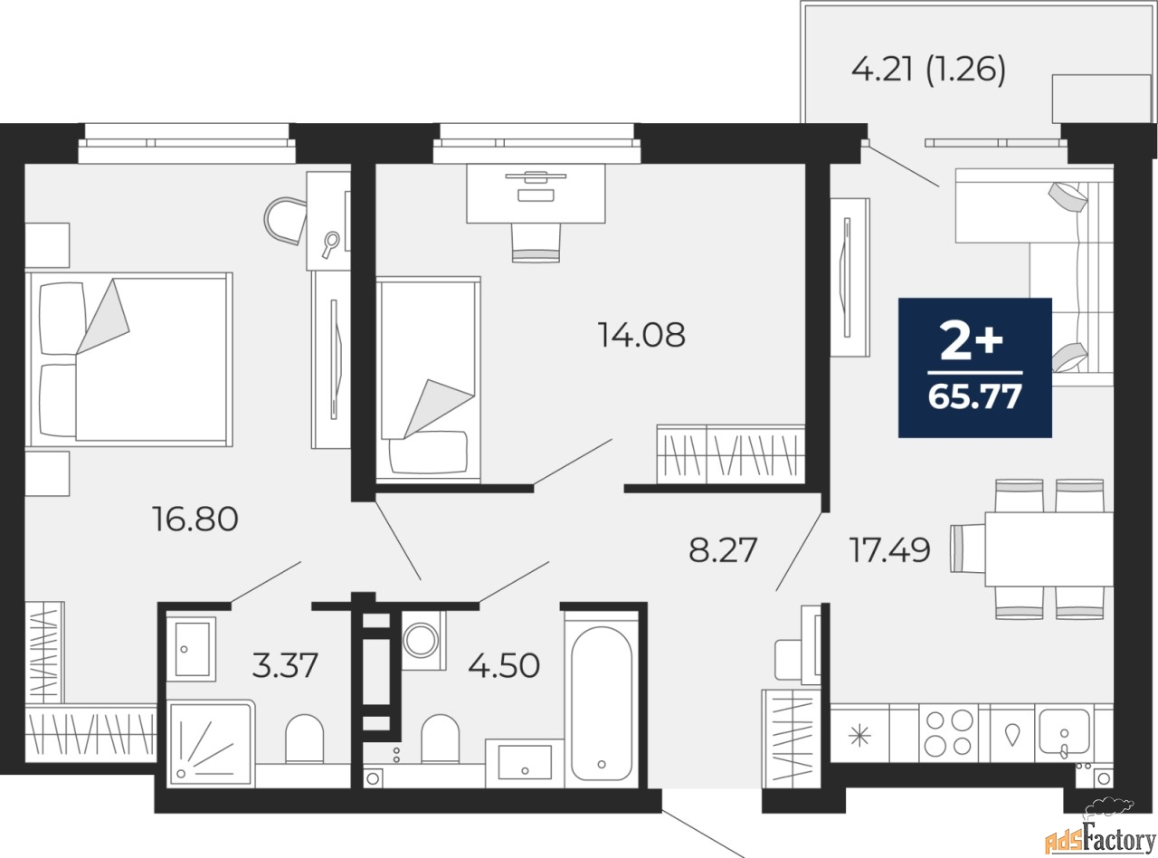 Квартира находится в корпусе 212. Дом монолитный, одноподъездный, высотой 21 этаж. На этаже 8 квартир. В подъезде 2 пассажирских и 1 грузовой лифт. Окончание строительства - 4 квартал 2026 года. Оформление сделки по договору долевого участия.