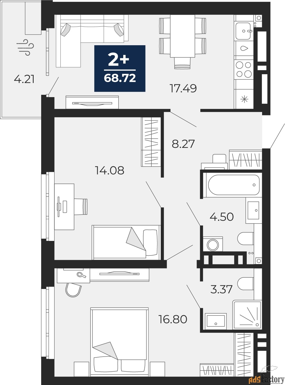 В квартирах выполнена качественная предчистовая отделка. Гладкие стены с финишным выравниванием по маякам. Ровный потолок для установки натяжного потолка. Установлены пятикамерные окна с двойным стеклопакетом (3 стекла).
