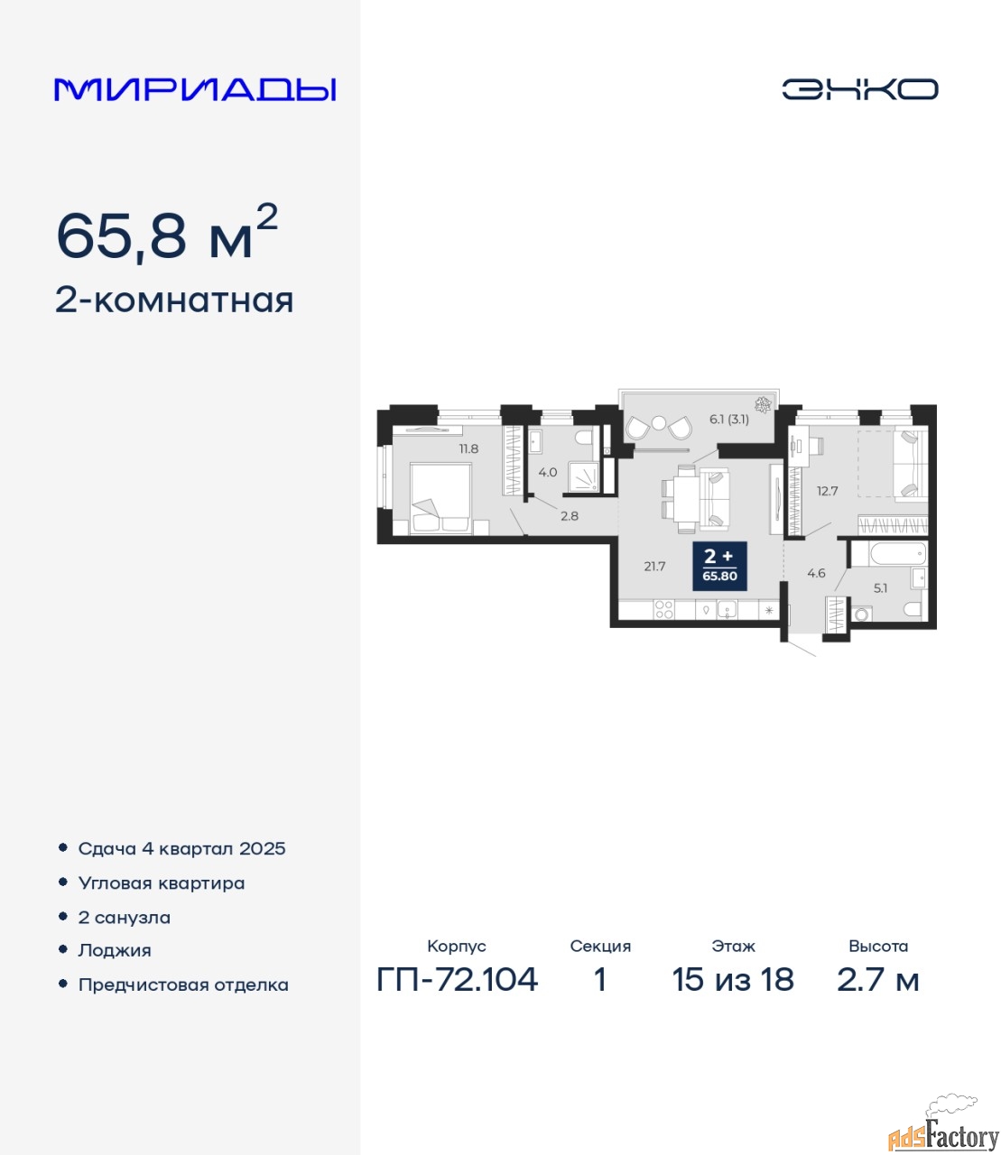 | Общая площадь (кв.м) | 65.8 |