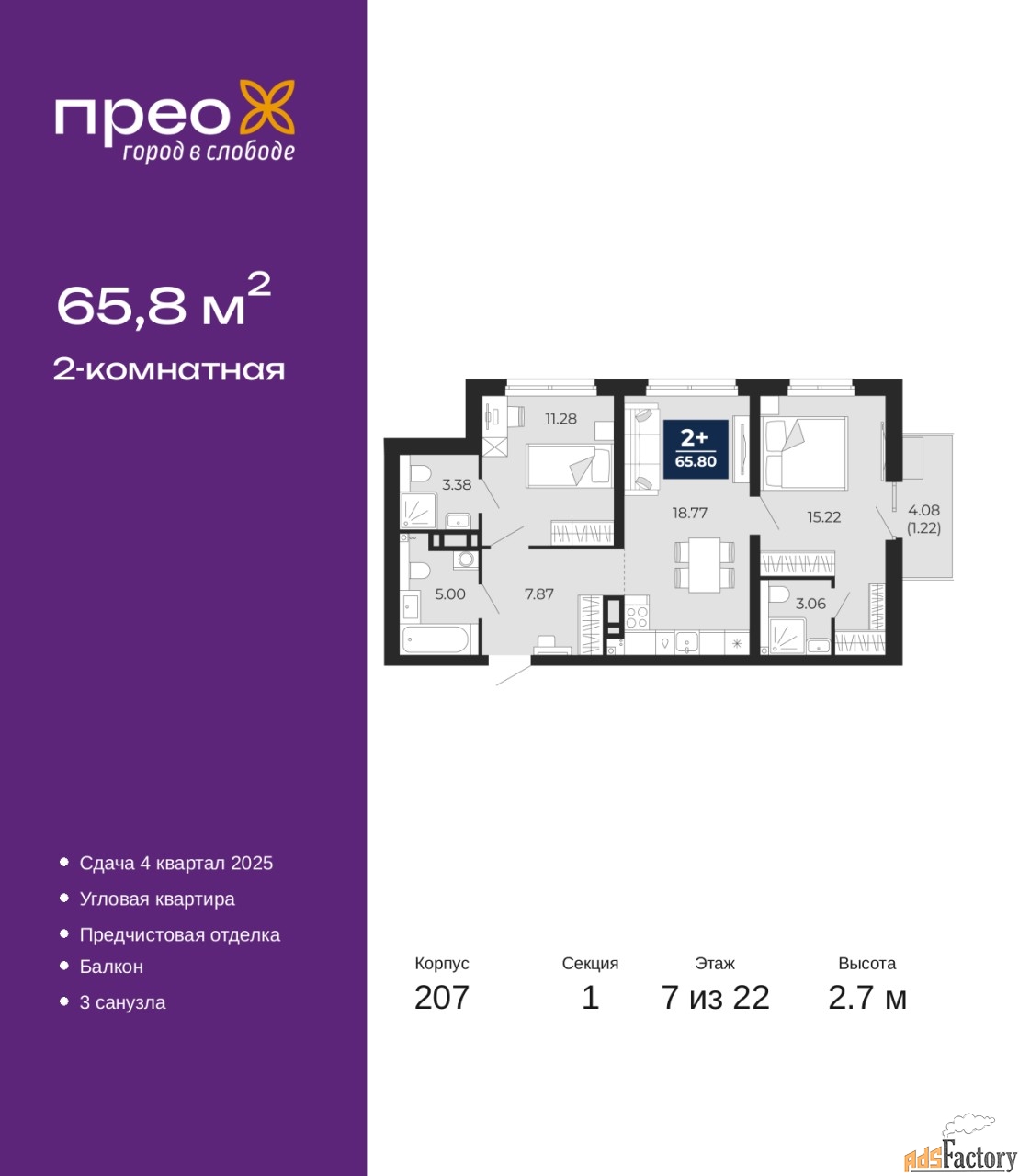 | Общая площадь (кв.м) | 65.8 |