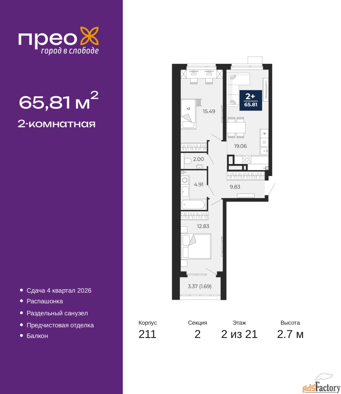 | Общая площадь (кв.м) | 65.81 |