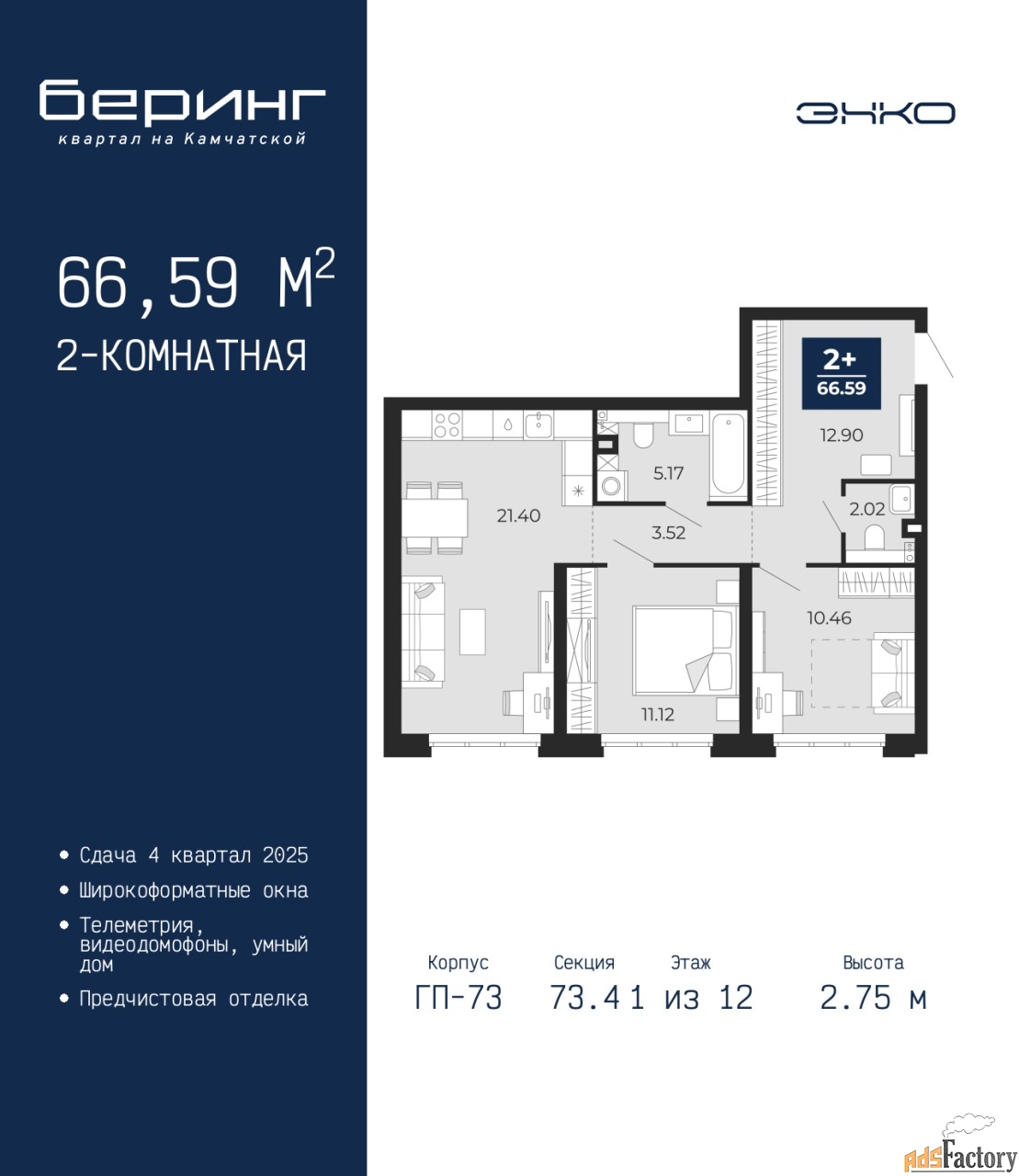 | Общая площадь (кв.м) | 66.59 |