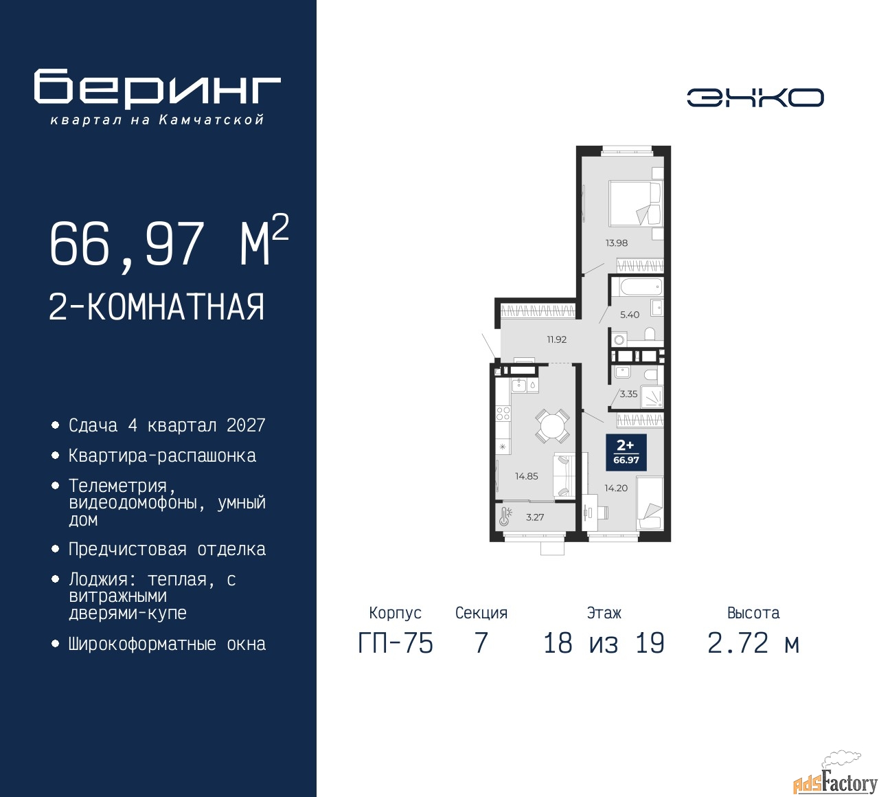 | Высота потолков (м.) | 2.72 |
