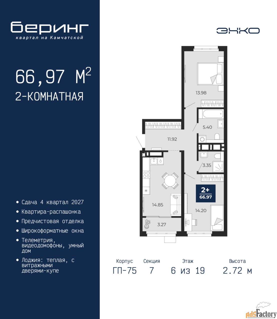 | Общая площадь (кв.м) | 66.97 |