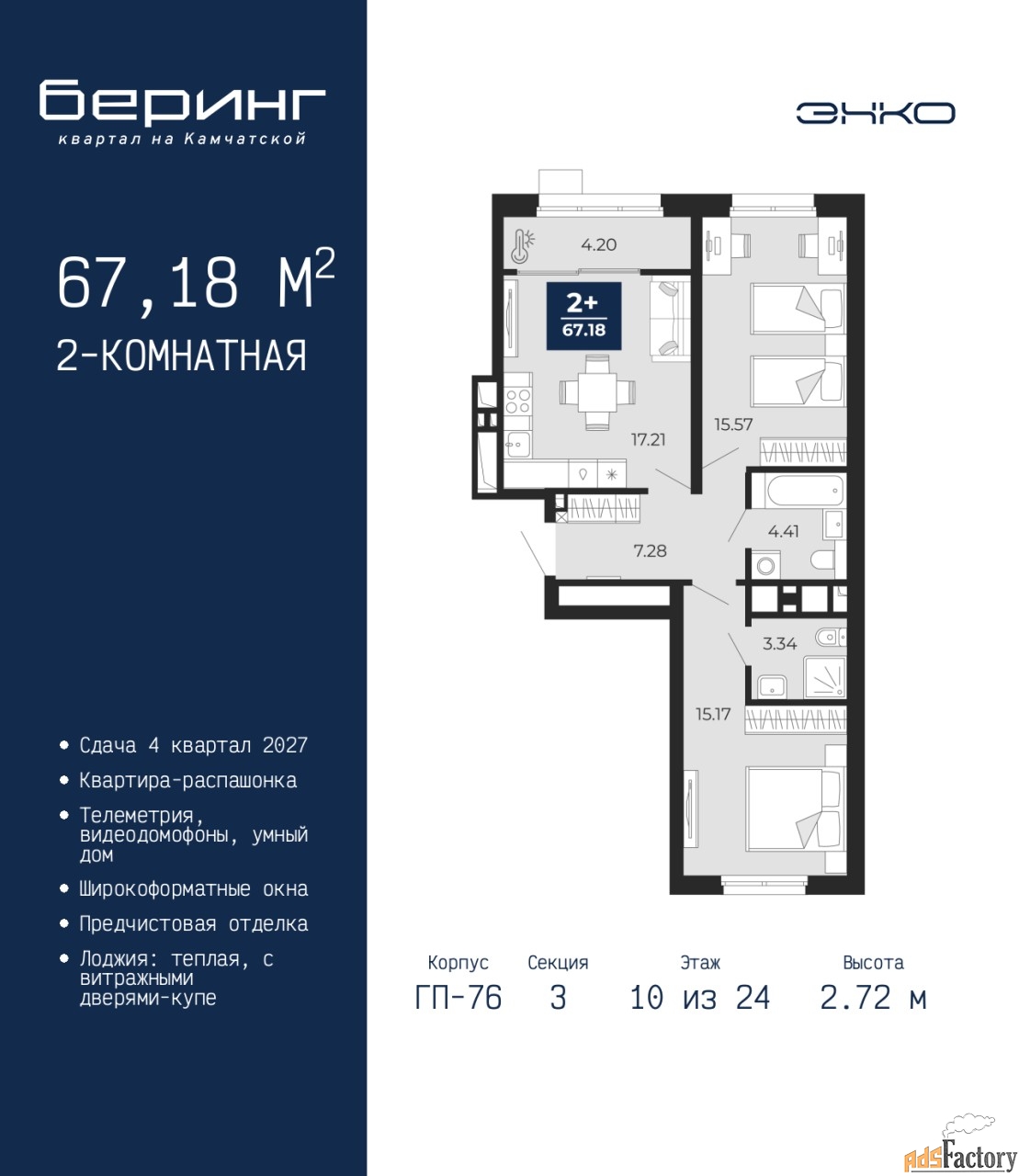 | Высота потолков (м.) | 2.72 |