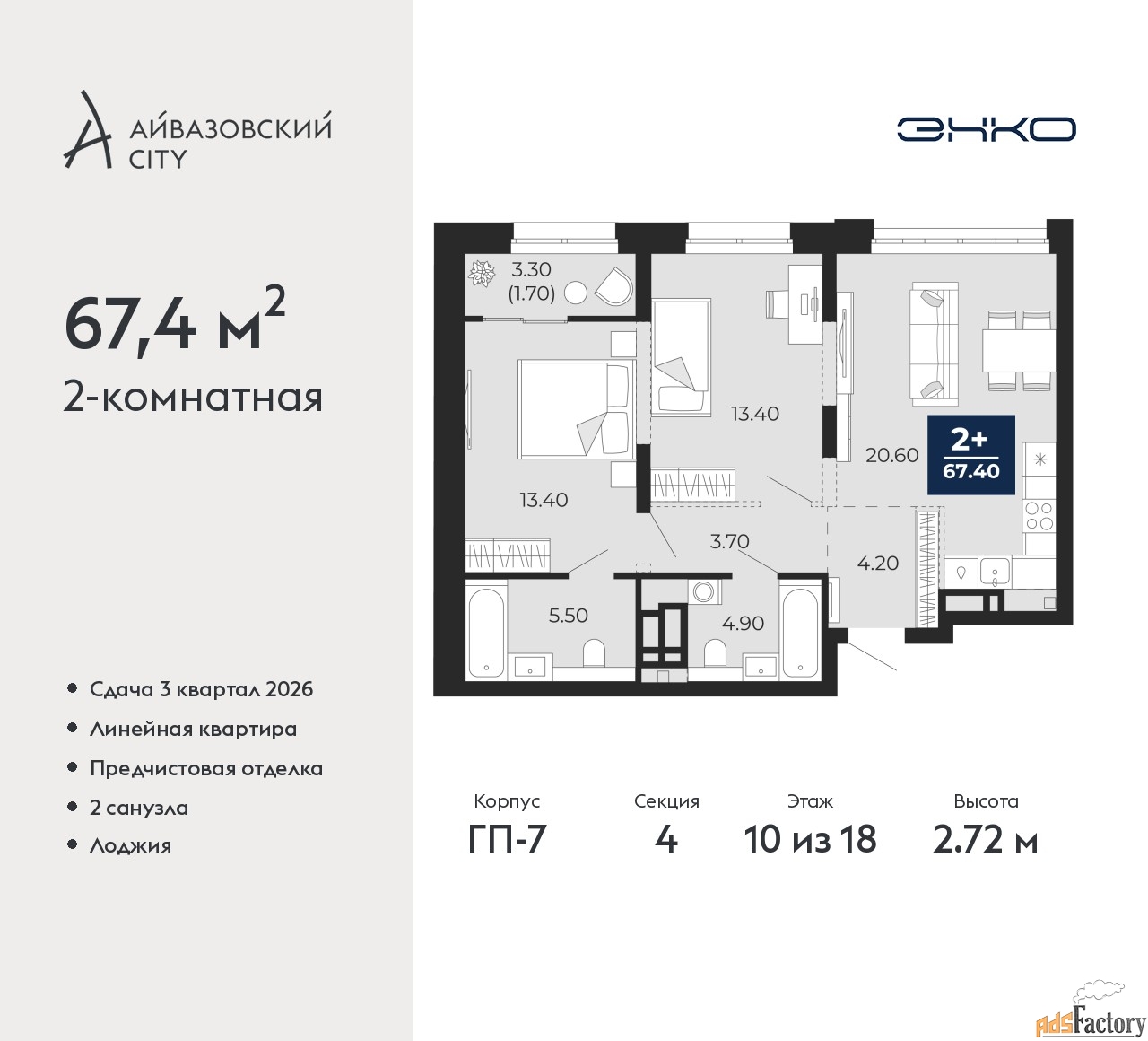 | Общая площадь (кв.м) | 67.4 |