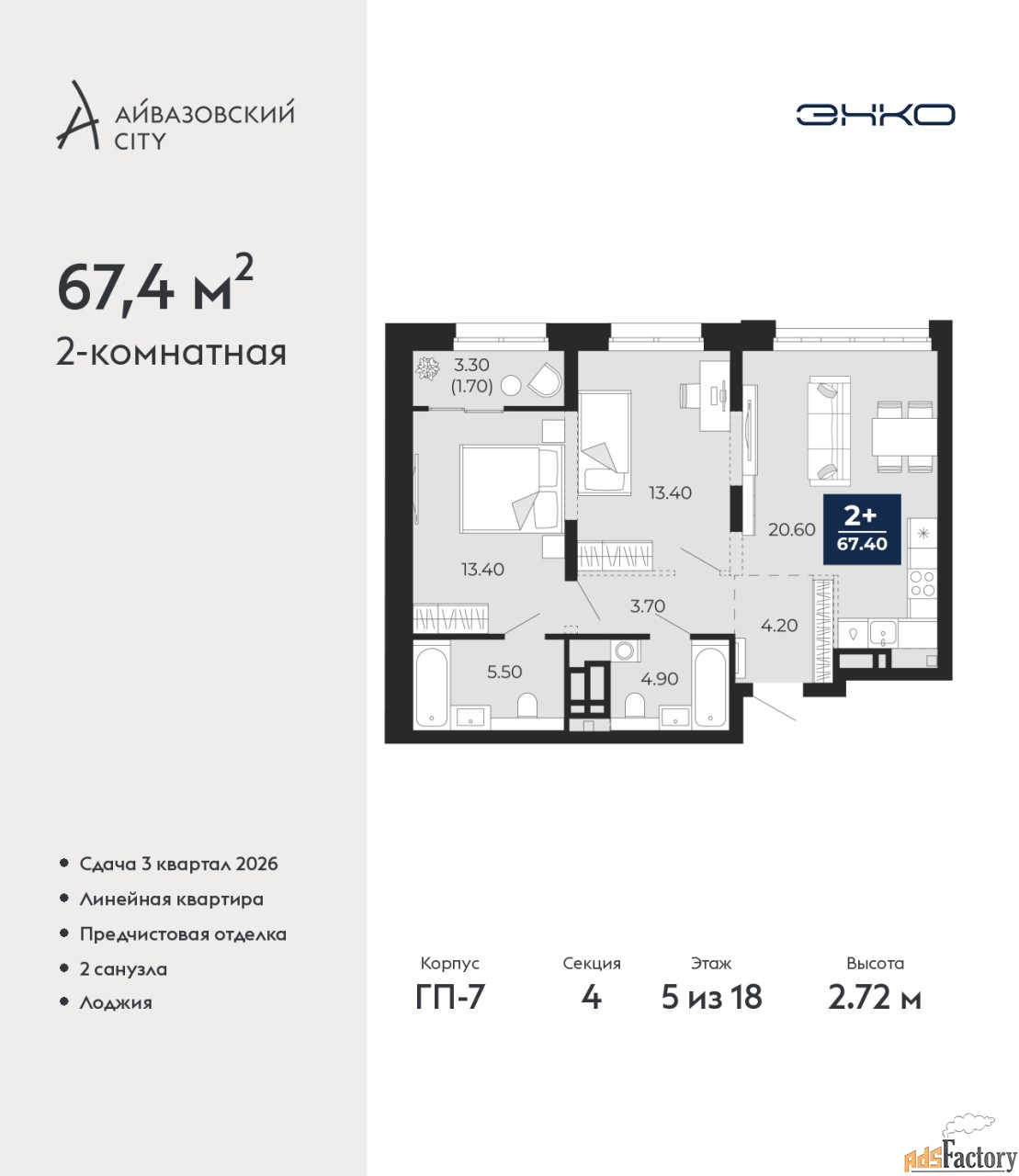 | Общая площадь (кв.м) | 67.4 |