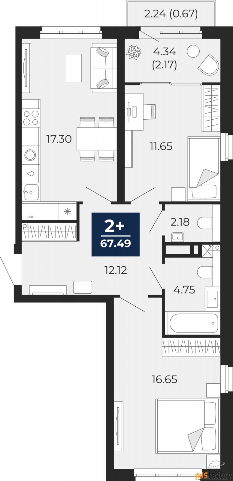 Дом монолитный, многоподъездный, переменной этажности, от 9 до 21 этажей. Квартира находится в 74.5-й секции высотой 21 этаж в корпусе ГП-74. На этаже 7 квартир. В подъезде 1 пассажирский и 1 грузовой лифт. Окончание строительства - 4 квартал 2025 года. Оформление сделки по договору долевого участия.