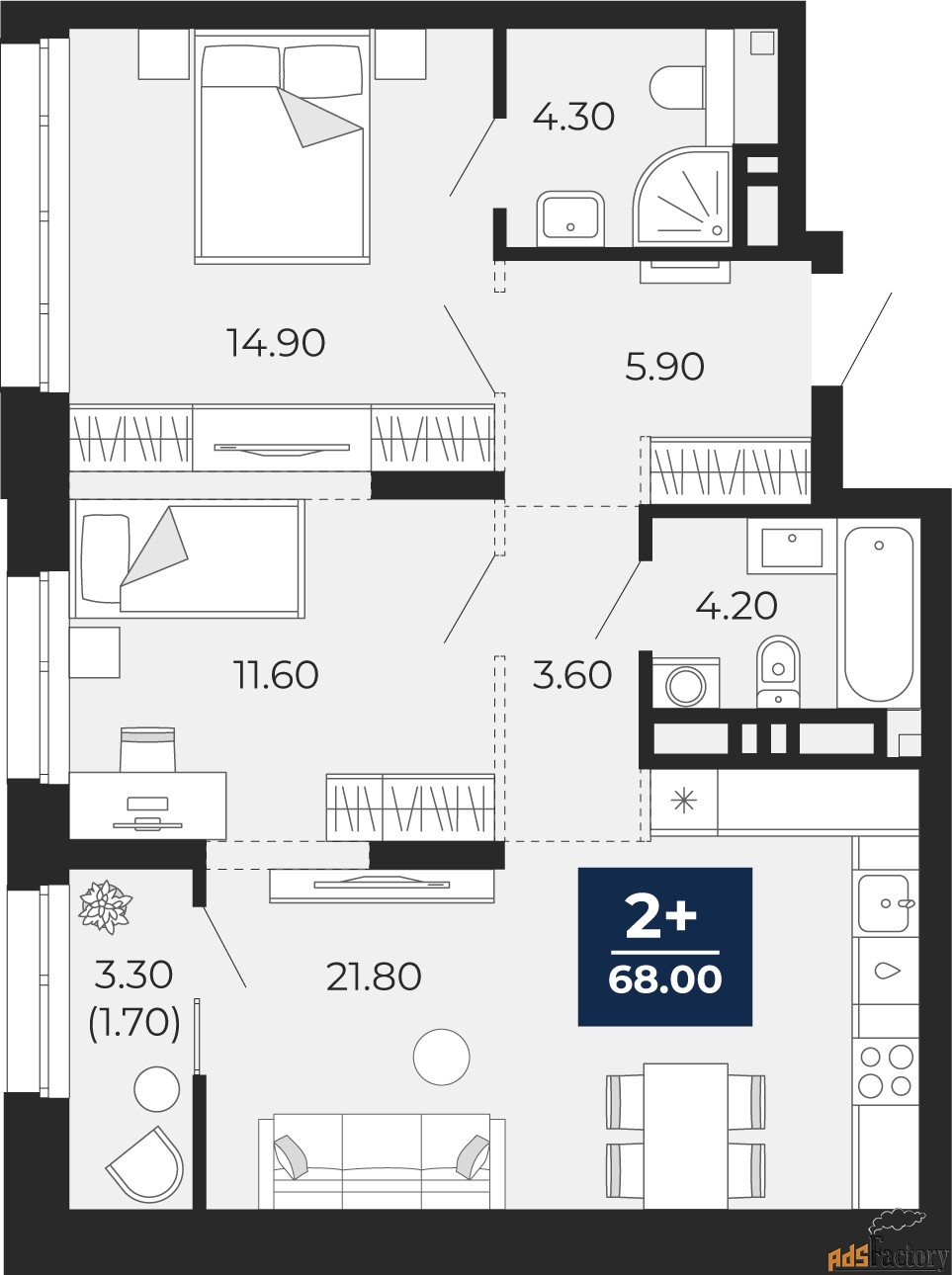 | Общая площадь (кв.м) | 68 |