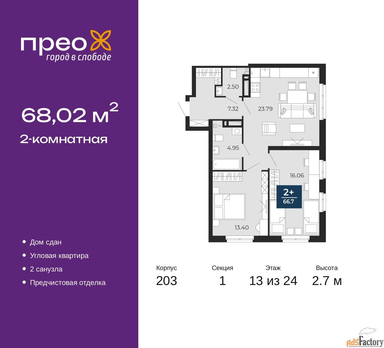 Квартира находится в корпусе 203. Дом монолитный, одноподъездный, высотой 24 этажа. На этаже 14 квартир. В подъезде 2 грузовых лифта. На сегодняшний день строительство окончено, дом сдан в 4 квартале 2024 года. Оформление сделки по договору купли-продажи.