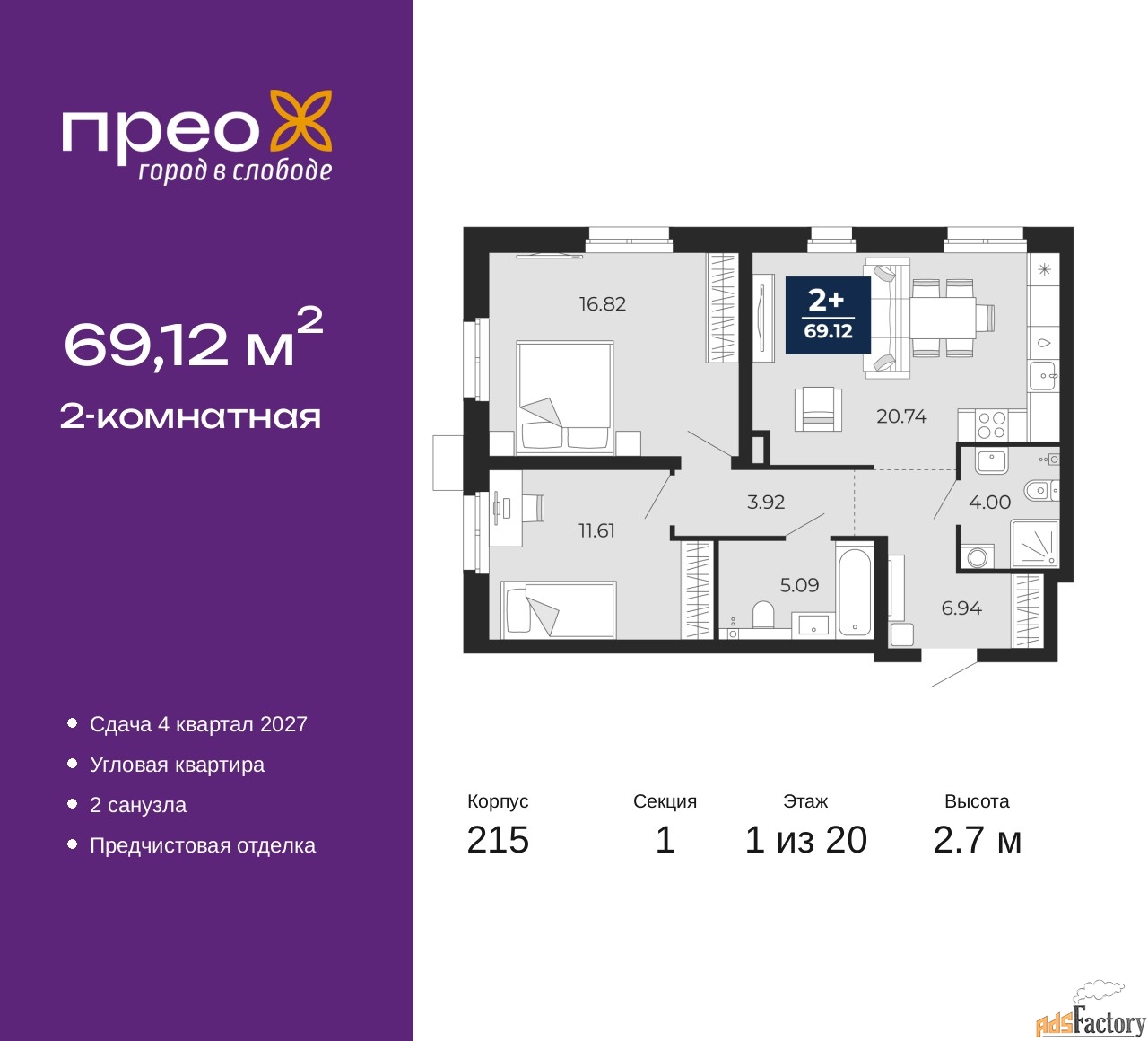 | Общая площадь (кв.м) | 69.12 |