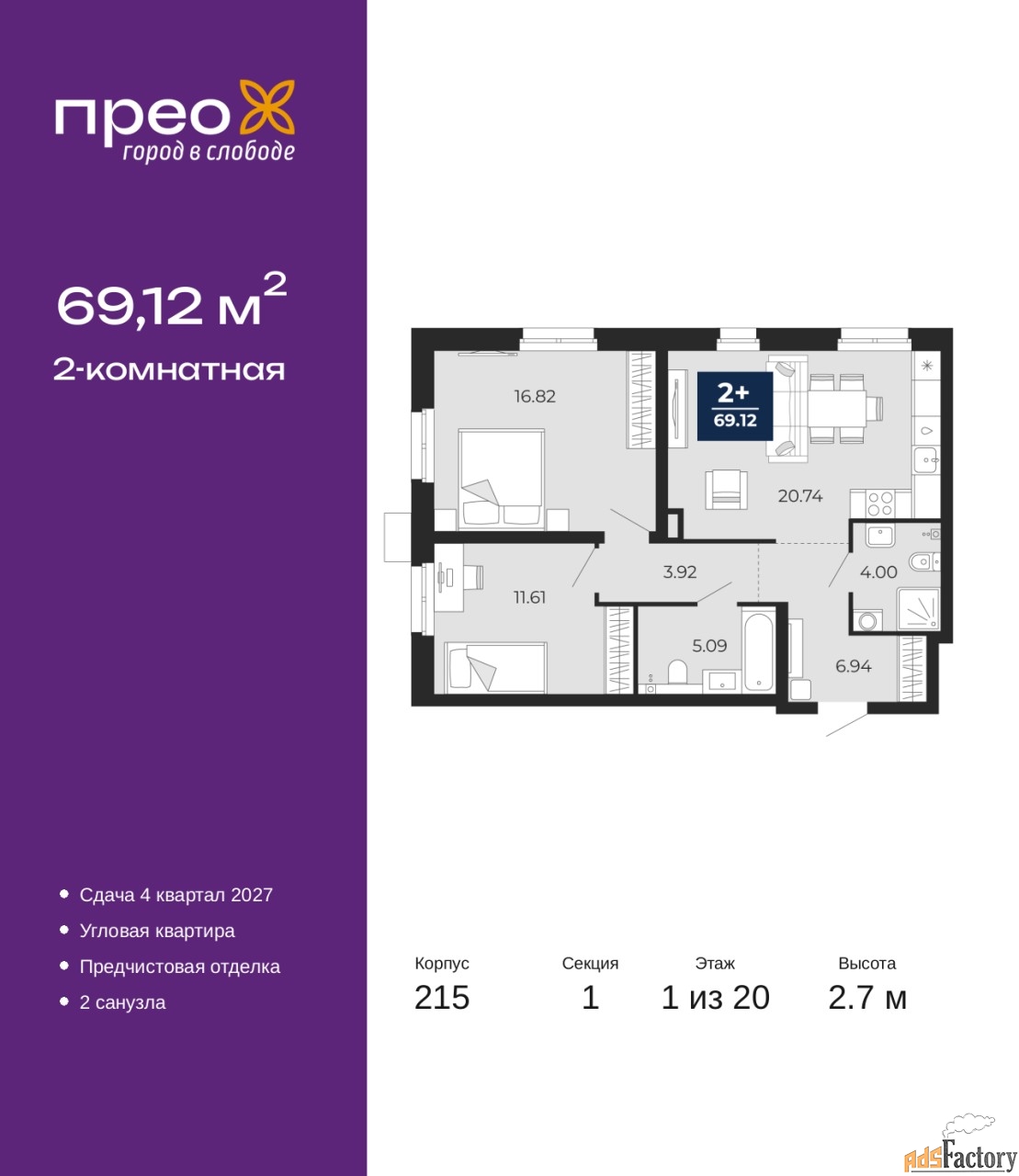 | Общая площадь (кв.м) | 69.12 |