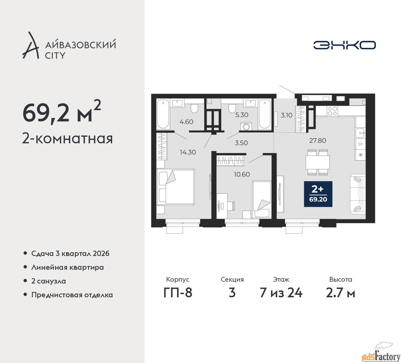| Общая площадь (кв.м) | 69.2 |