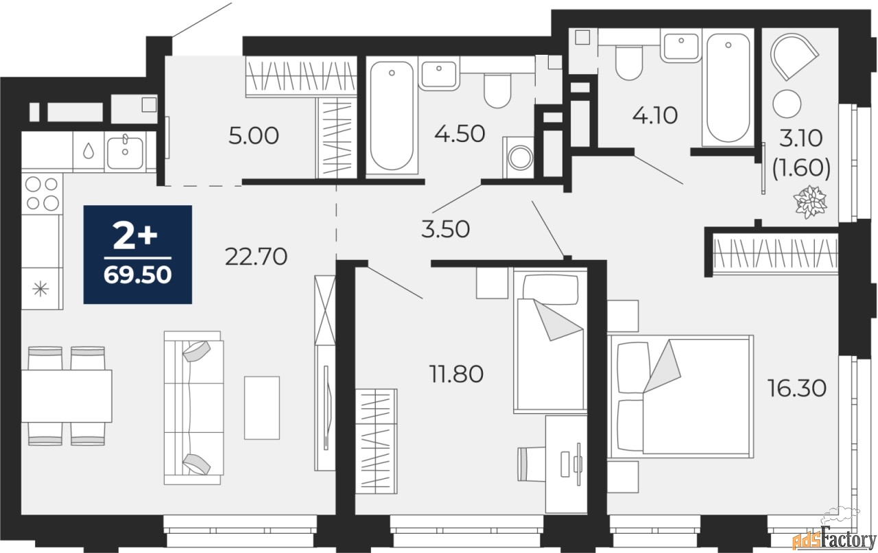 | Общая площадь (кв.м) | 69.5 |