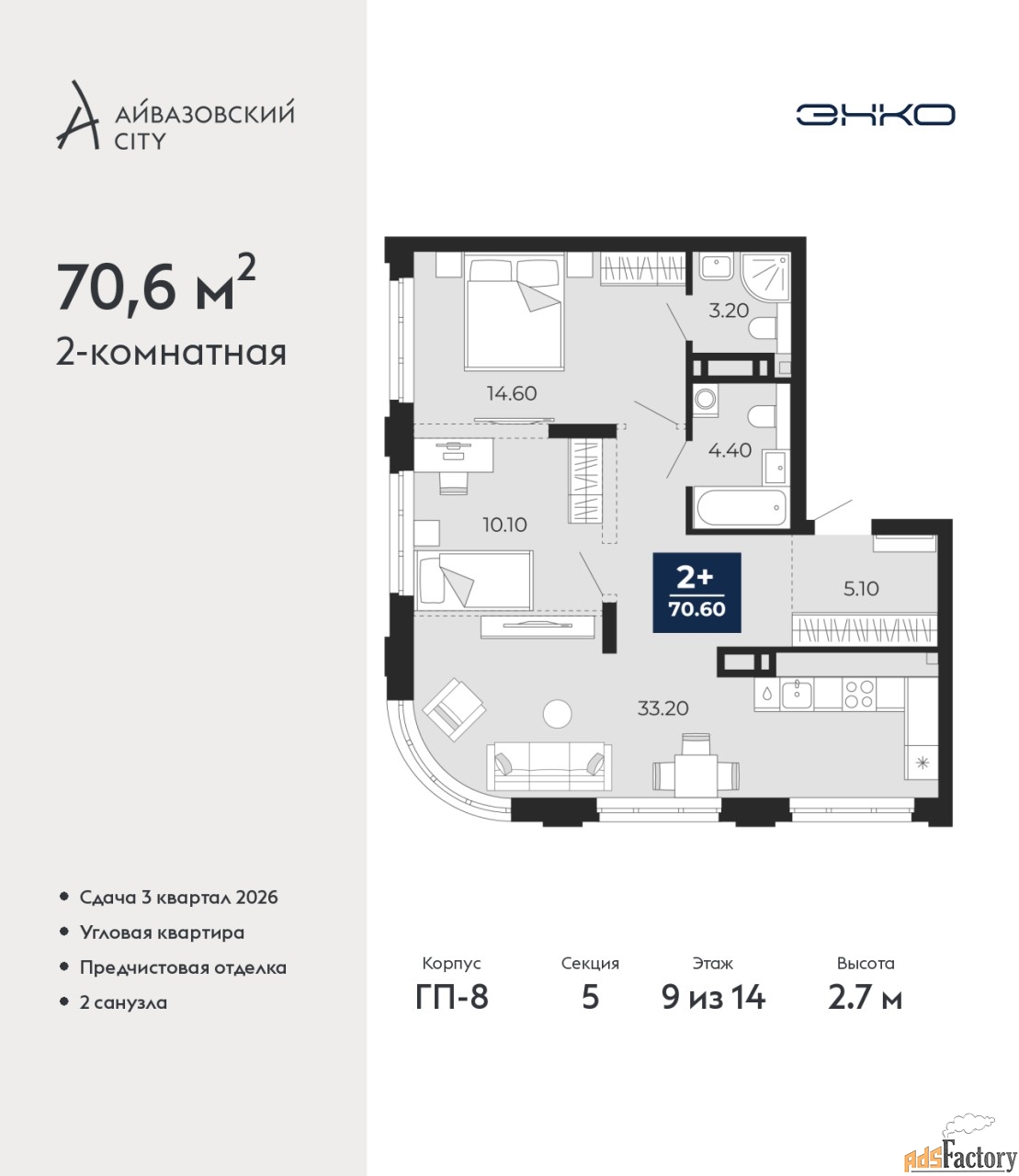 Дом монолитный, многоподъездный, переменной этажности, от 14 до 24 этажей. Квартира находится в 5-й секции высотой 14 этажей в корпусе ГП-8. На этаже 5 квартир. В подъезде 1 пассажирский и 1 грузовой лифт. Окончание строительства - 3 квартал 2026 года. Оформление сделки по договору долевого участия.