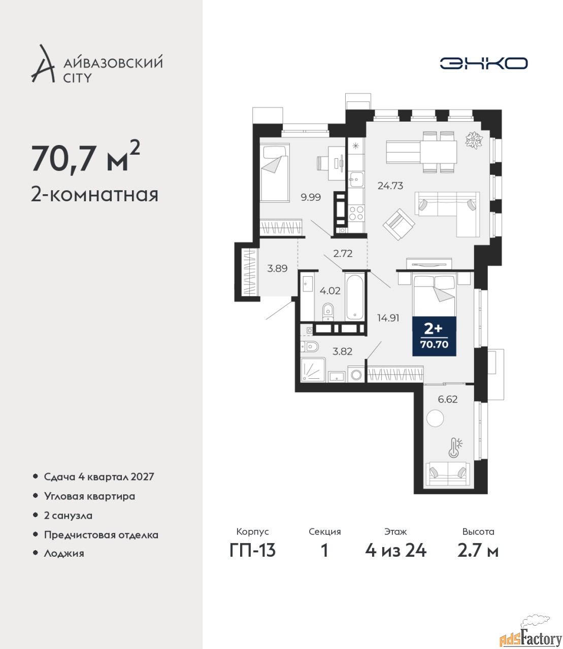 | Общая площадь (кв.м) | 70.7 |