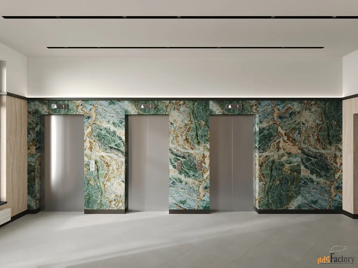 Стилистика подъездов продолжает концепцию Беринга, вдохновлённого Камчаткой: сдержанный,