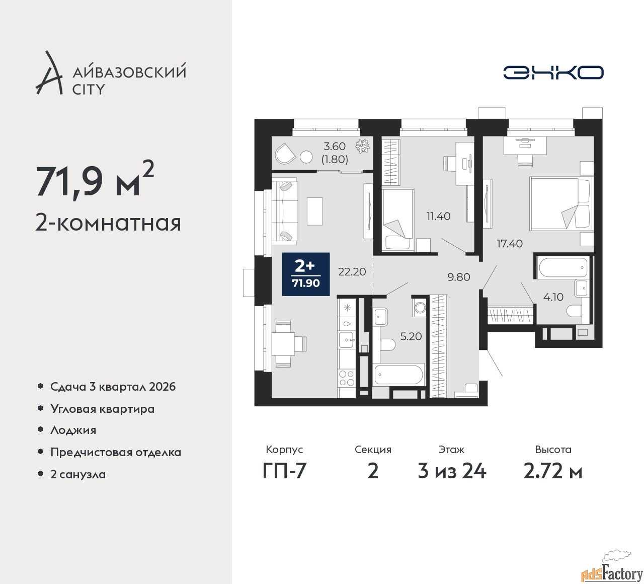 | Общая площадь (кв.м) | 71.9 |