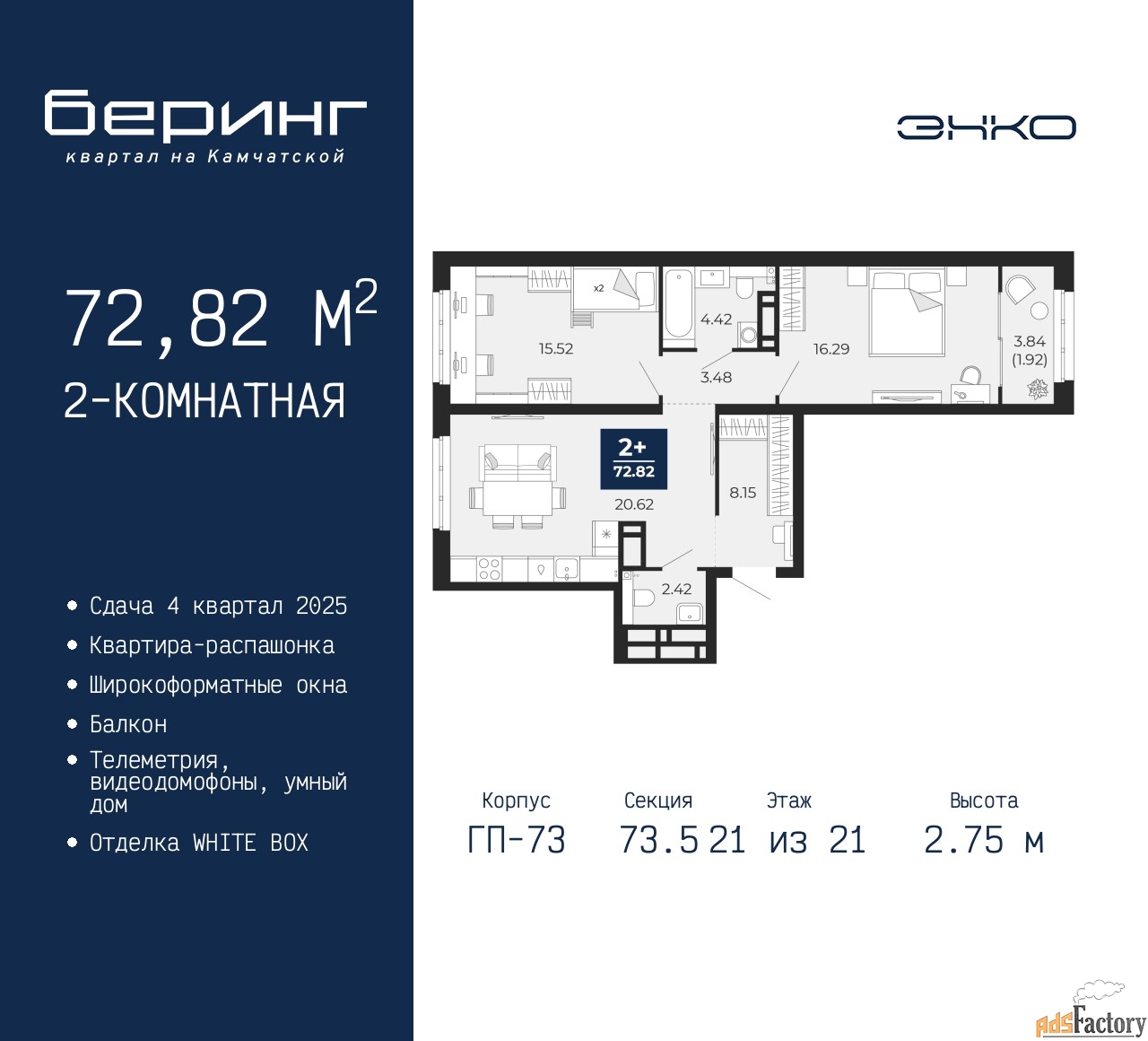 Дом монолитный, многоподъездный, переменной этажности, от 9 до 22 этажей. Квартира находится в 73.5-й секции высотой 21 этаж в корпусе ГП-73. На этаже 6 квартир. В подъезде 1 пассажирский и 1 грузовой лифт. Окончание строительства - 4 квартал 2025 года. Оформление сделки по договору долевого участия.