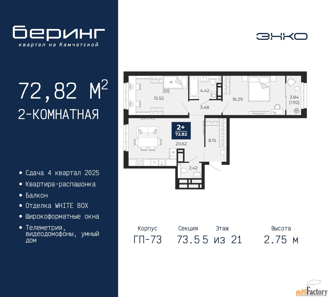| Общая площадь (кв.м) | 72.82 |