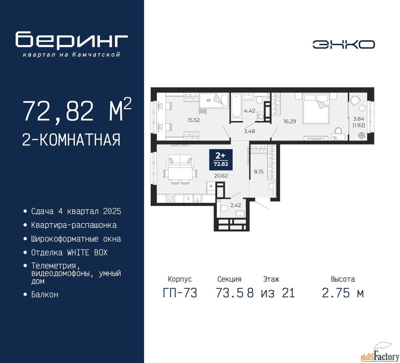 | Общая площадь (кв.м) | 72.82 |